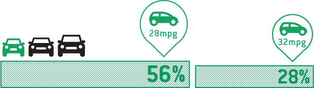 Our extensive network and robust fleet enables us to introduce millions of people to new automotive technologies. That’s why solutions like Enterprise CarShare play a critical role in shaping the future of urban mobility. In addition, our sustainable, fuel-efficient rental fleet includes a variety of hybrids and electric vehicles. Approximately 56% of our vehicles average a highway fuel efficiency rating of at least 28 mpg and 28% of our vehicles average 32 mpg or better.
